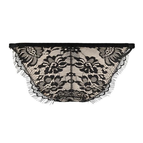 The Allure Him set is the ultimate celebration of femininity. Its exciting design and floral black lace on a panel of enticing beige tulle leaves just enough for the imagination. The luxurious lace has a delicate eyelash edge.